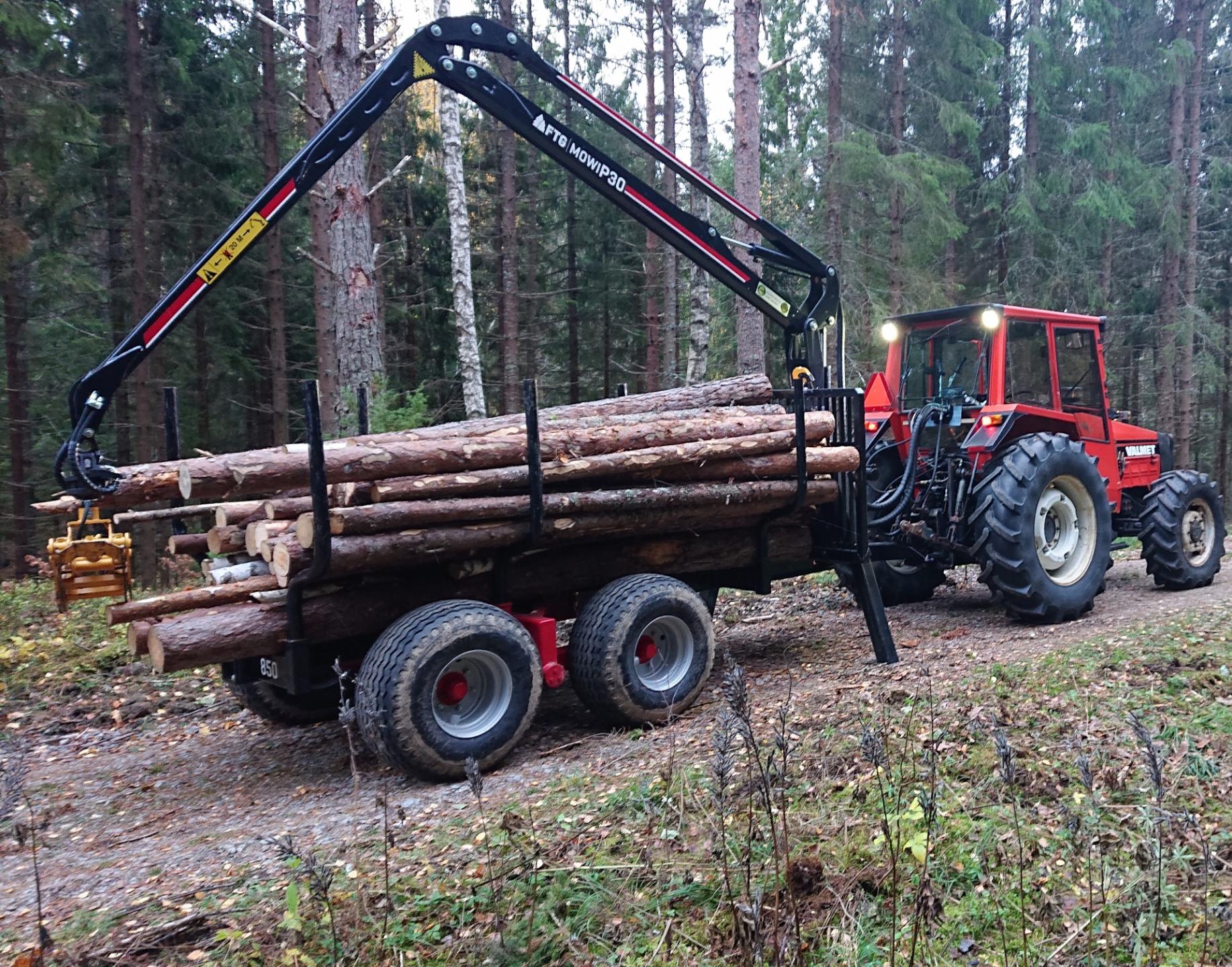 Blev en tur i lördags för att prova huggarvagn en med valmet 705. Nu har lastaren och speglar åkt av. Jag blev riktigt nöjd med traktorn. Behöver inte ha så höga varv på motor som jag behövde på fiat en. Så nu håller jag med att göra en bakrutekil. En kompis som är plåtslagare kom hem och mätte sidokilarna så nu är dom monterade. Håller på med underdelen som jag gör i plexiglas så det får monteras till helgen samtidigt så ska jag sänka ventilpaketet så det blir bekvämare att köra med kranen. Byte belysning bak men blev inte nöjd så jag väntar på ny belysning. Sen får jag och funderar på att göra grenavisare på traktor med men vi får se hur det blir med det.
