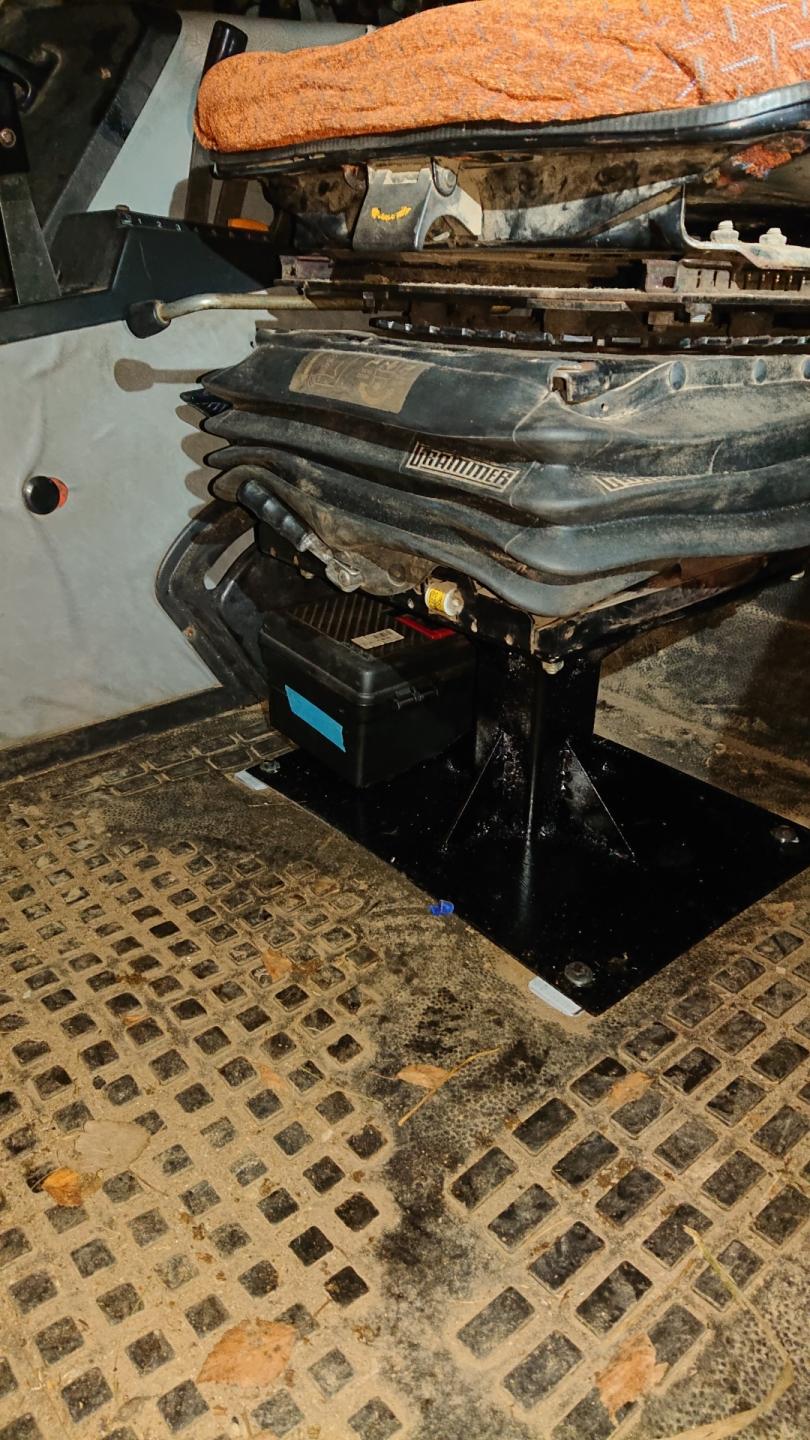 Idag åkte stolen ur traktorn för nu ska det bli nytt undrede till den. Så nu kanske det blir bättre med plats för fötterna när stolen är vänd bakåt. Så ska jag klurar ut vilken höjd jag ska ha för att det ska bli bra. Fundera på att såga till olika höjd på några vedkubbar för att prova vilken höjd jag ska ha.