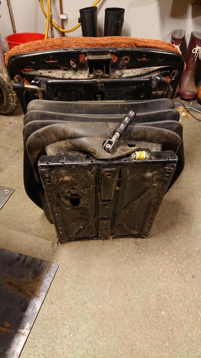 Idag åkte stolen ur traktorn för nu ska det bli nytt undrede till den. Så nu kanske det blir bättre med plats för fötterna när stolen är vänd bakåt. Så ska jag klurar ut vilken höjd jag ska ha för att det ska bli bra. Fundera på att såga till olika höjd på några vedkubbar för att prova vilken höjd jag ska ha.