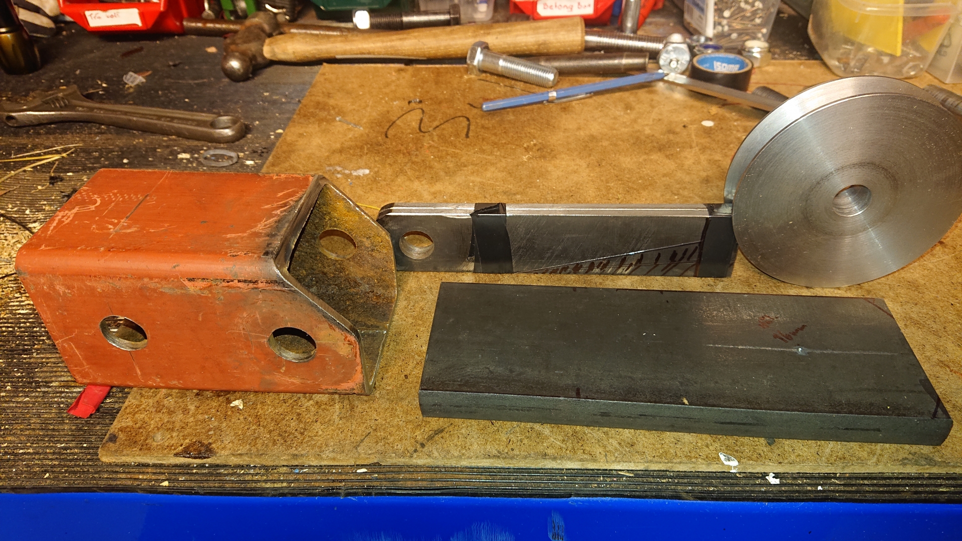 Nu är nästan allt färdigt för att svetsa fast. Det får bli lite hem arbete på jobbet i morgon. Det som ska göras nu är att borra ett hål och såga lite. Och böja till ett järn till. Sen blir det att svetsa underhelgen om det inte kommer regn eller snö.