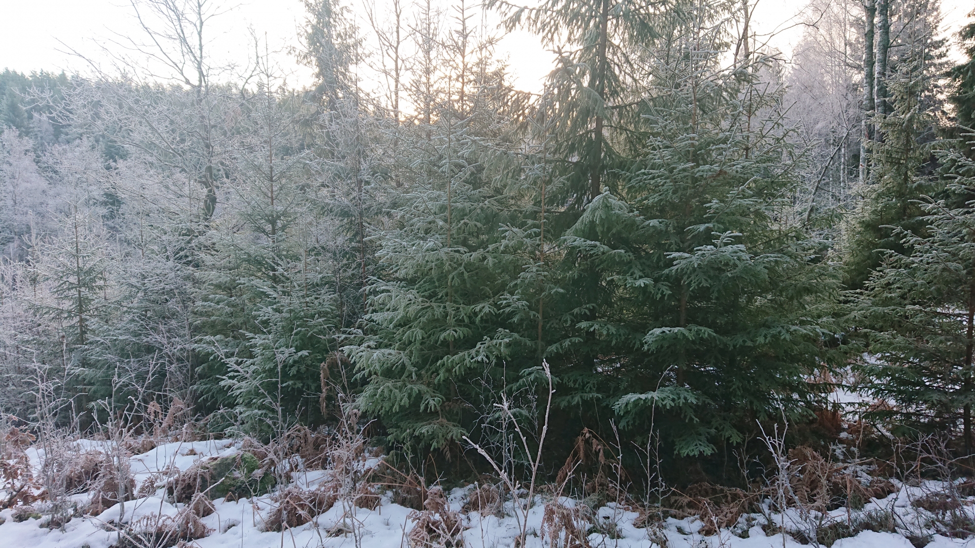 Blev en tur och rensa lite i en granplantering som min mor planterade för många år sen. De enda som gäller är motorsåg. Så det är mycket tätt med gran och sly som har växt upp. Körde två tankar idag i en slänt med gran och det känns i benen nu. Så det kommer att ta tid för att rensa detta om råde. Men det blir nog bra till slut.