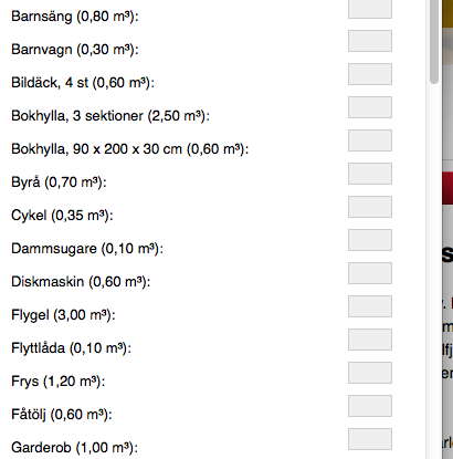 Lite utförligare på andra ställen där man kan pricka i hur många man har av soffor, cyklar och allt annat.
