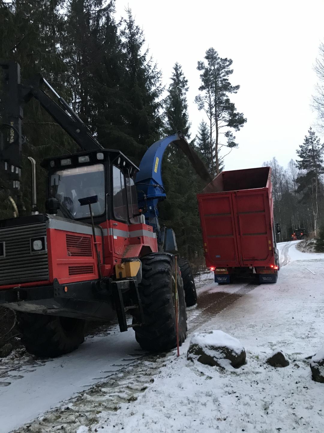 sön 05 jan 2020, 21:00#604953Inte så stor prestation av mig men idag kom huggen å matade igenom lite, dom passade på när det var lite kallt så vägen höll. Ny hugg på flisaren för säsongen.