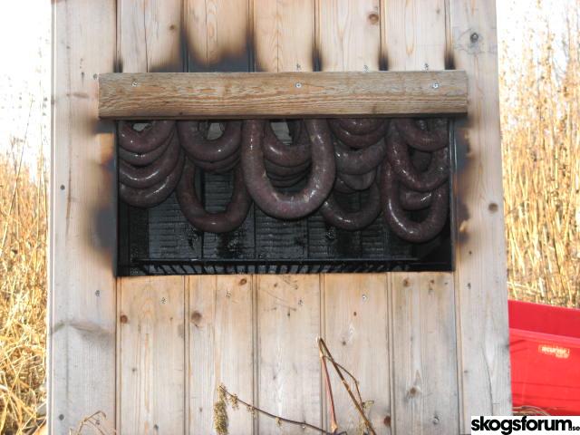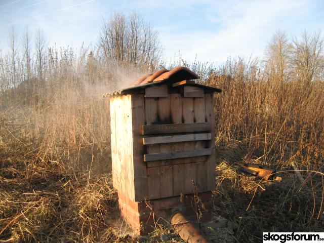 Hallå! Din rök som ni har på bild här ser lika dan ut som en jag byggde för några år sedan. Nu bor jag på annan plats o röken står kvar. Men nu tänker jag bygga en ny. Jag vill bara berätta att för några år sedan röjde jag en ledningsgata mellan Virserun och Simpevarp, kärnkraftverket utanför Oskarshamn. Där träffade jag en gammal go gubbe i skogen som vad jag tycker var en smartare lösning på en hemma rök med god storlek, jag ska nu försöka förklara hur den såg ut, skulle va kul om det är någon här som har liknande, hör av er i så fall. Bygg helt enkel en eldstad (mura) ca 80 * 80 cm 50 cm hög. Lägg en kortenplåt överst, ställ sedan på ett hus ovanpå där, ja ni vet ju det brukar se ut som ett litet utedass. Då blir det ju som så att i eldstaden kan man elda med vilken ved man vill, på plåten innuti rökhuset lägger man en rå kluven alebit kanske två men inte för tätt för då börgar det brinna.