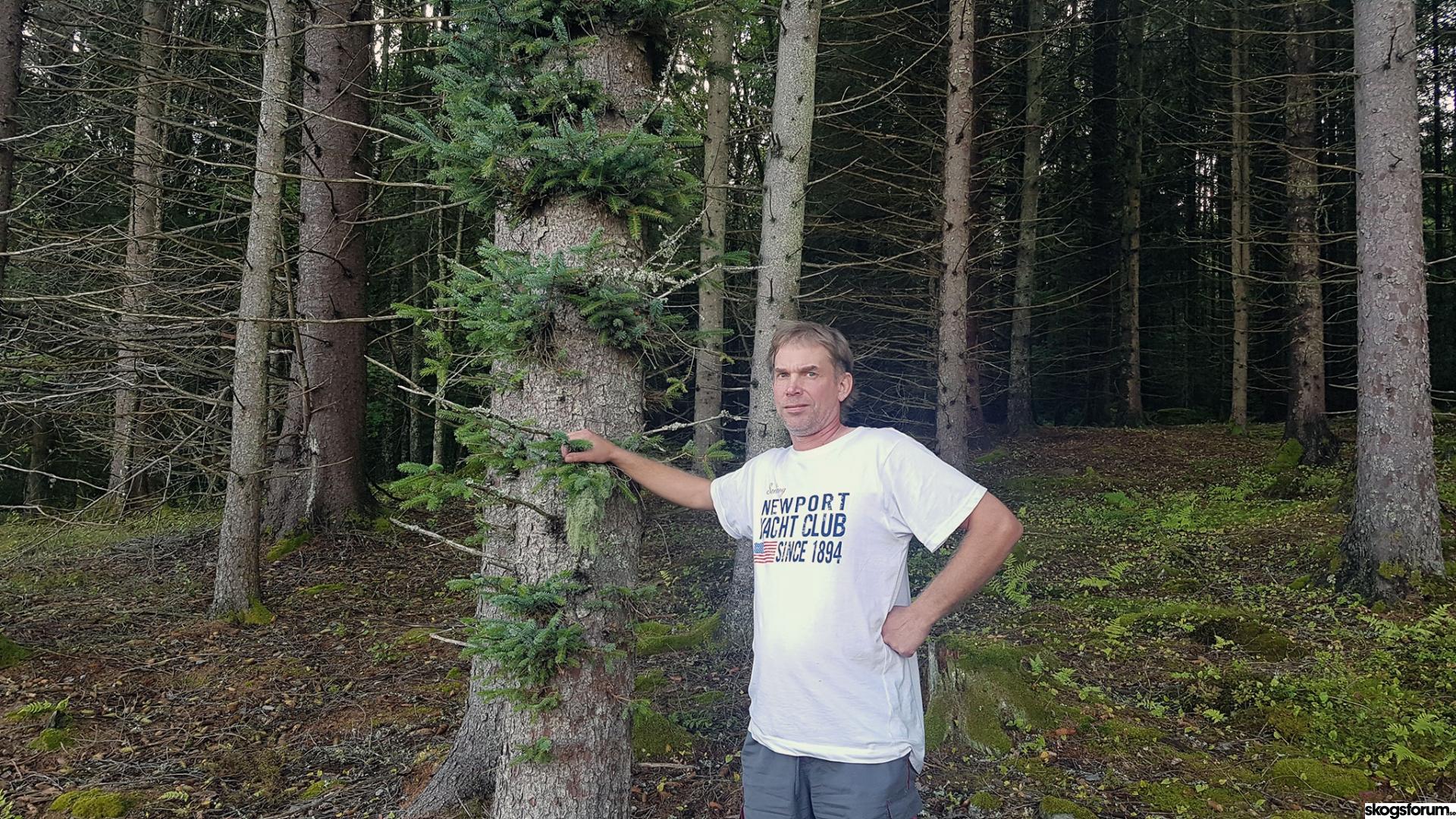Avslutar med en bild på självaste vedproducent (Fredrik) tillsammans med en nu från Skogsforum känd Sitkagran med Vattskott på gran i mängder - tack för att jag fick komma!