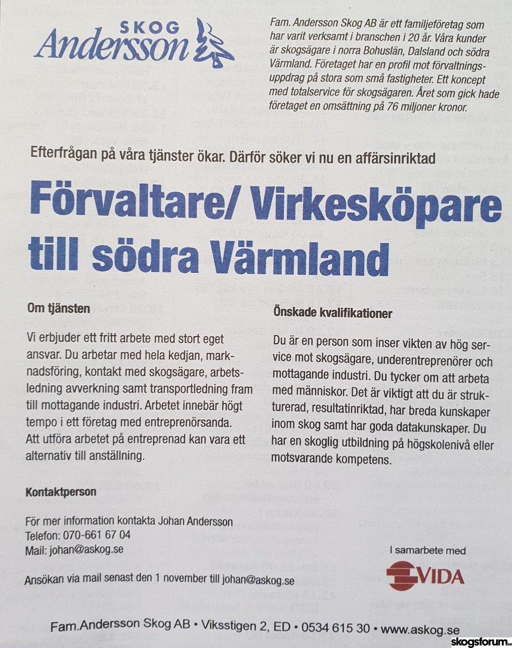 Just nu söker de en förvaltare/inköpare till Värmland och sedan tidigare har de en virkesköpare för området Säffle. Anledningen är förstås att kunna köpa mer råvara, men bryter man ner det så kan det vara så att sågverket i Nössemark kan vara ett av de större skälen.