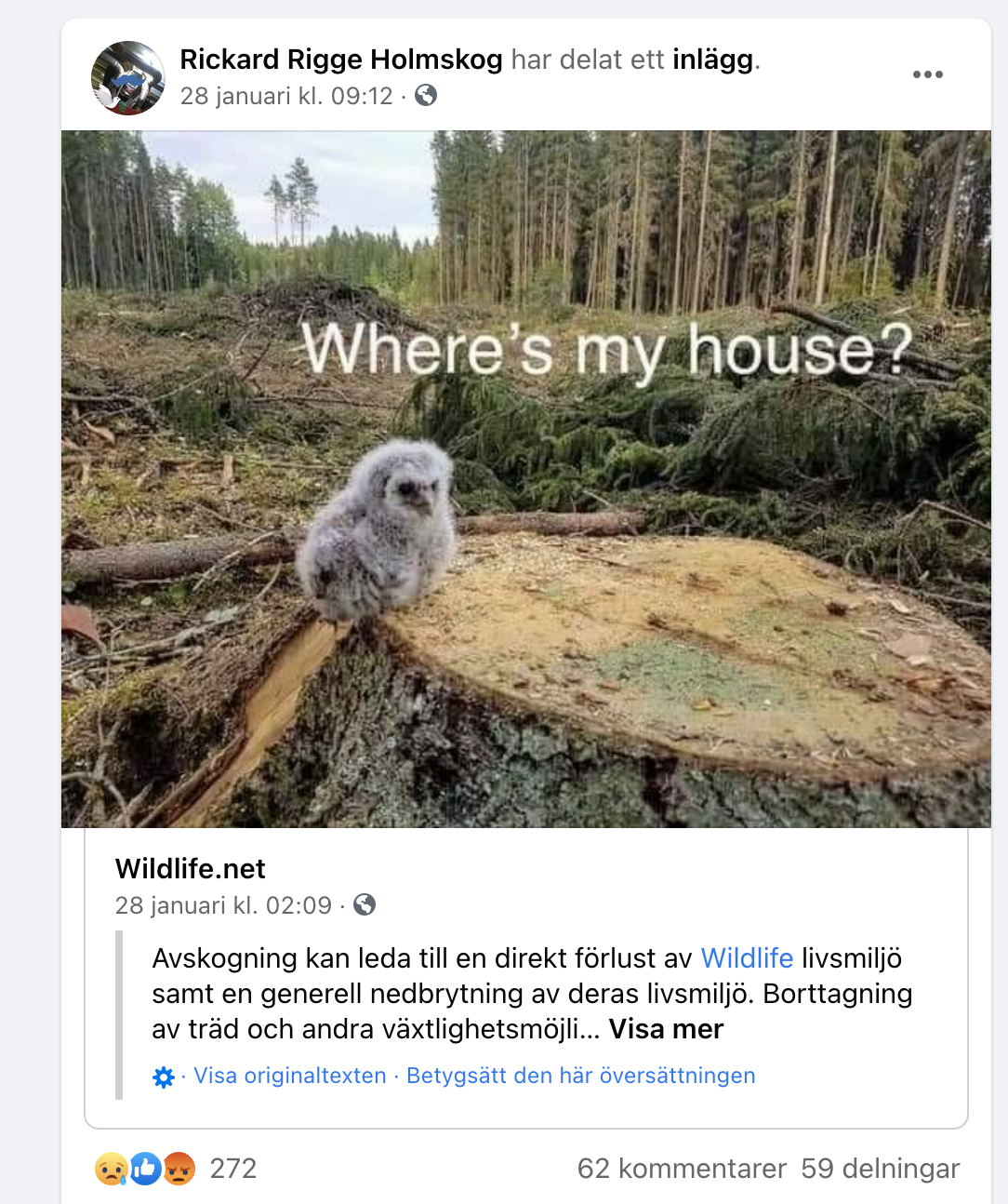 Re: Skydda skogen delar fejkbild på "holkrövad" uggleunge