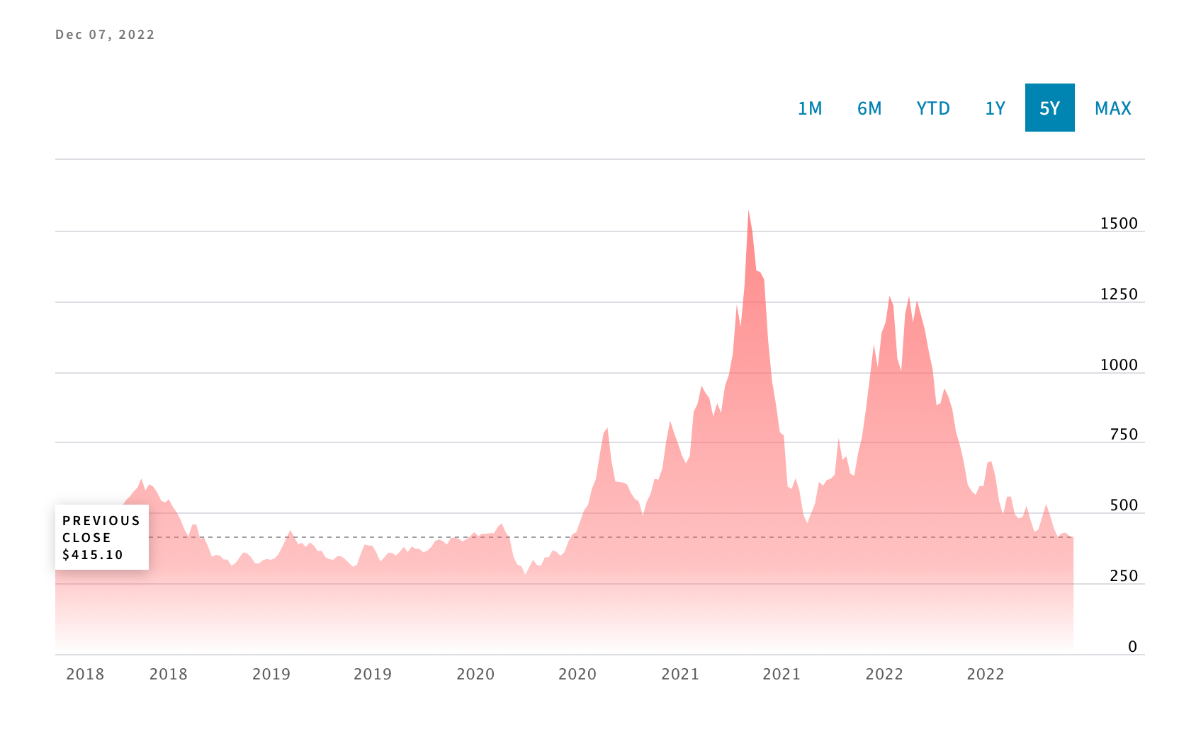 Det har varit berg-och-dalbana för de amerikanska trävaruprisern de senaste två åren efter att priserna började raka i höjden hösten 2020. Pristopparna hamnade runt 1418 US$ i maj 2021. Efter en nedgång i fjol sommar bottnade priserna sedan på 468 US$ i augusti 2021. Då pratades det, ungefär som idag, om att marknaden är på väg ner och flera sågverk pratade om produktionsbegränsningar. Men priset drog iväg upp igen under hösten i fjol och toppade i februari återigen skyhögt på 1320 US$/MBFT. Sedan dess har priset sjunkit successivt prisbottnar på 528 US$ 13 juni, 479 US$ 5 augusti och nu senast 462 US$ 6 september.