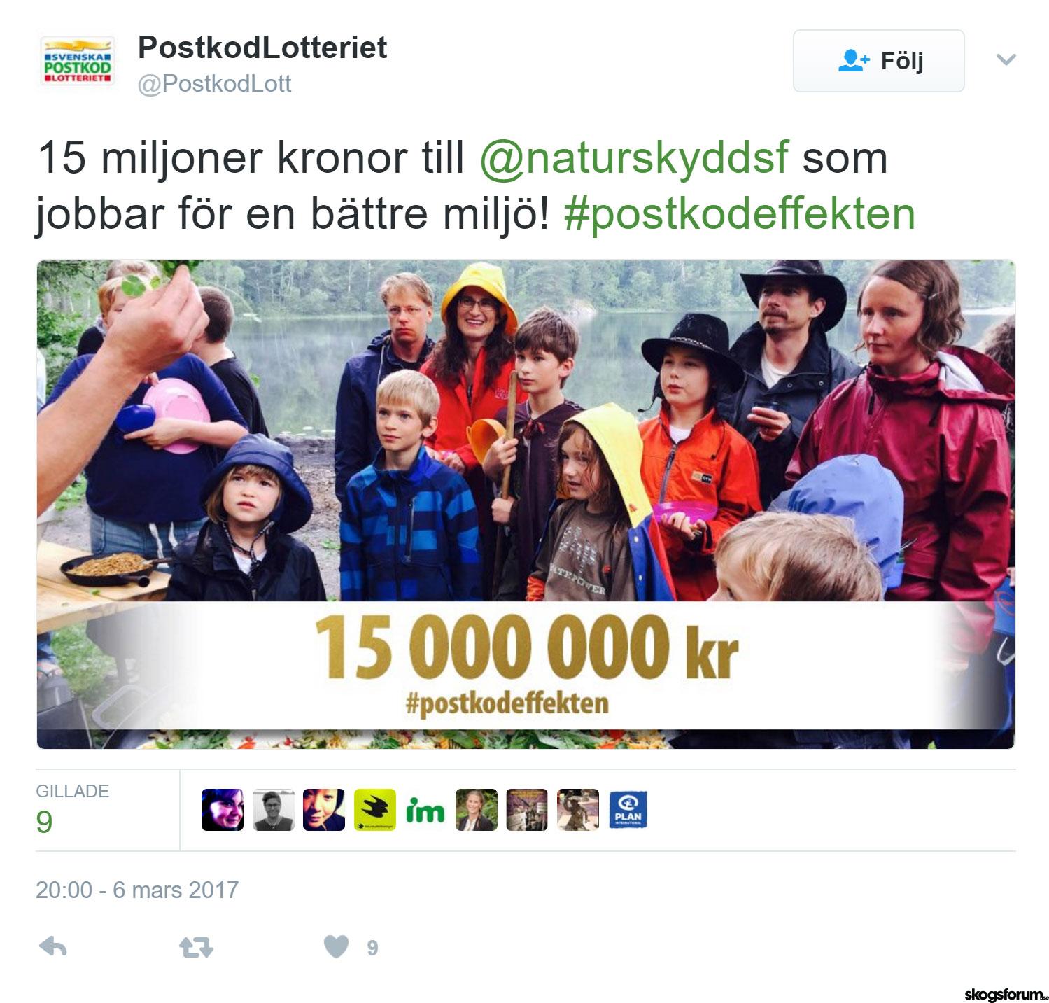 Re: Naturskyddsföreningen fick 15 Mkr av Postkodlotteriet 20