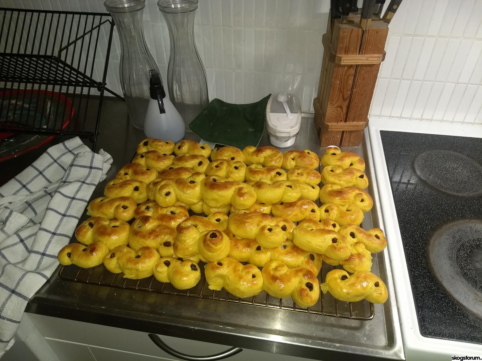 SjÀlv bakade jag lussekatter eller galtar som de egentligen heter med barnen inför imorgon...och lite pepparkakor....orkade inte göra degen, sÄ det blev köpt istÀllet...