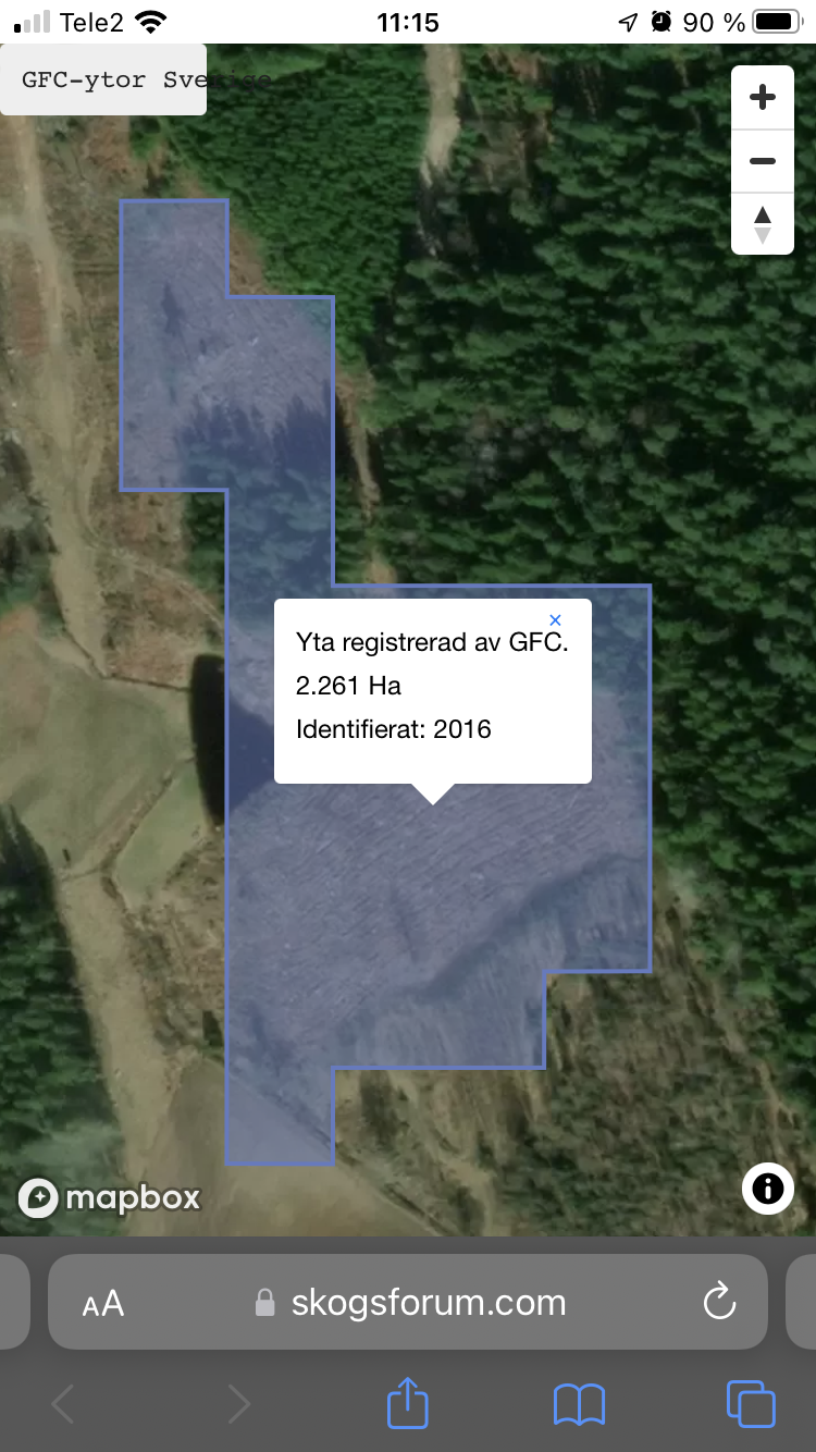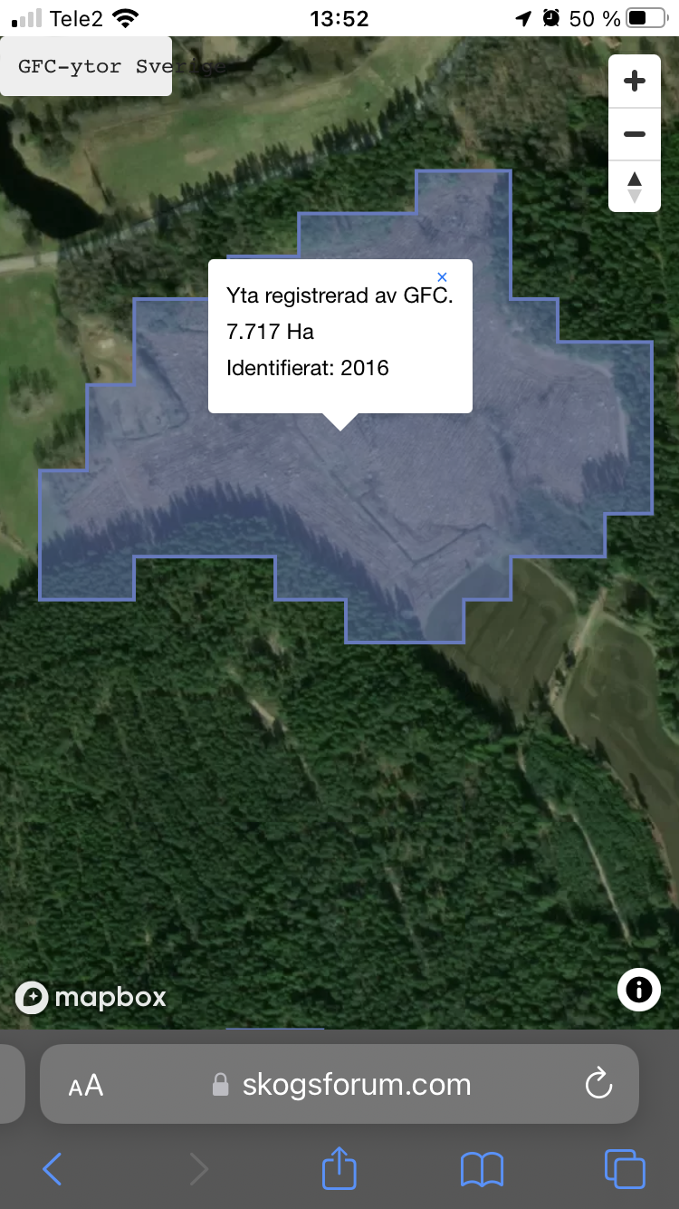 Fredrik Reuter skrev:Ytterligare en faktor är att jag optimerat GFC-ytornas visning i kartan något. Det har att göra med att materialet i sin grund var nästan 0,5 GB och för att få någorlunda snabb visning, främst på sämre nätverk, så är inte polygonerna alltid exakt mot vad GFC visar. Arealen i inforutan är det dock (fast med passus om överskattning är avdragen eller ej).